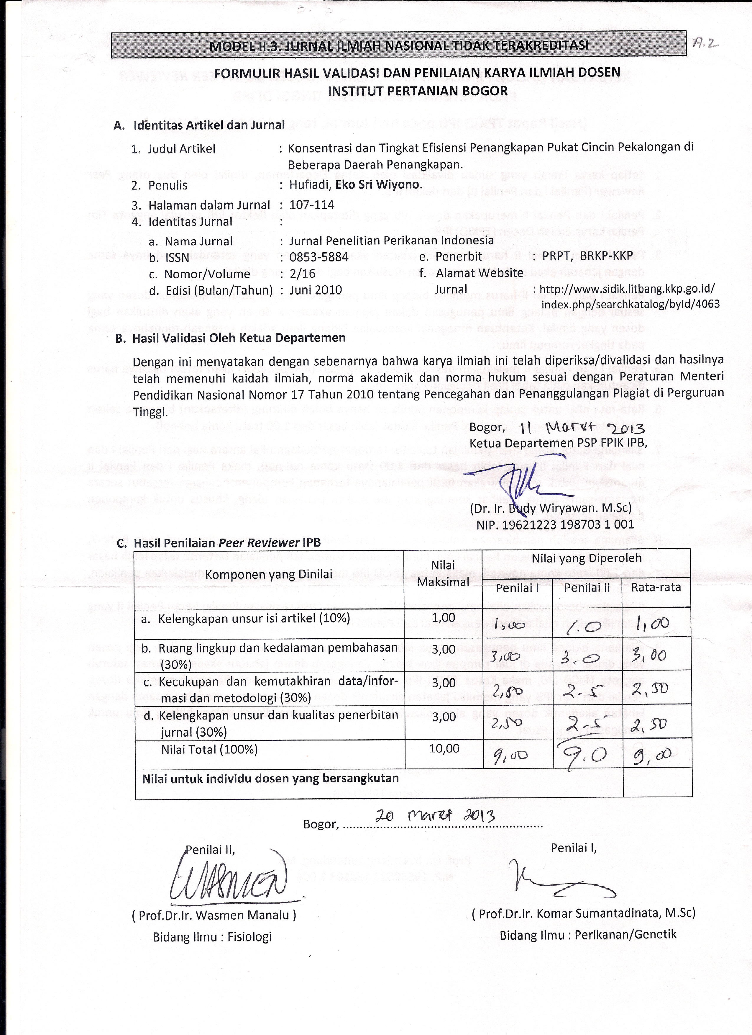 14. Lembar Validasi. Konsentrasi dan Tingkat Efisiensi Penangkapan Pukat Cincin Pekalongan di Beberapa Daerah Penangkapan (4.014Mb)