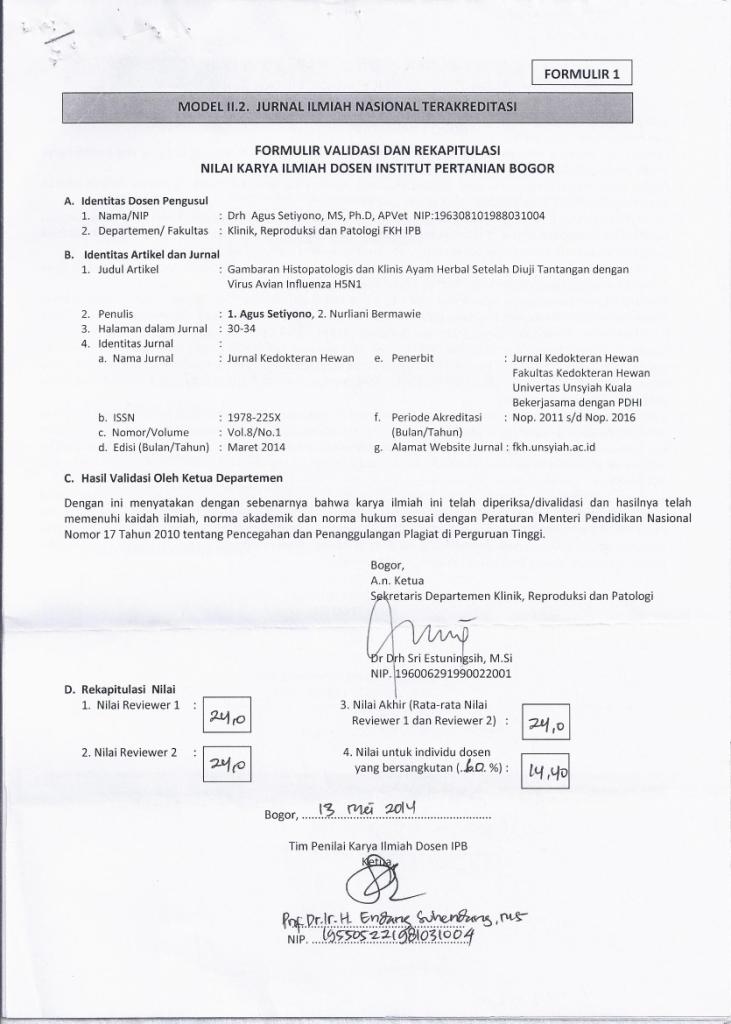 | Publisher: | Jurnal Kedokteran Hewan FKH Univ. Syiah Kuala & PDHI Vol.8; No.1; Maret; 2014; Hal.30-34 |