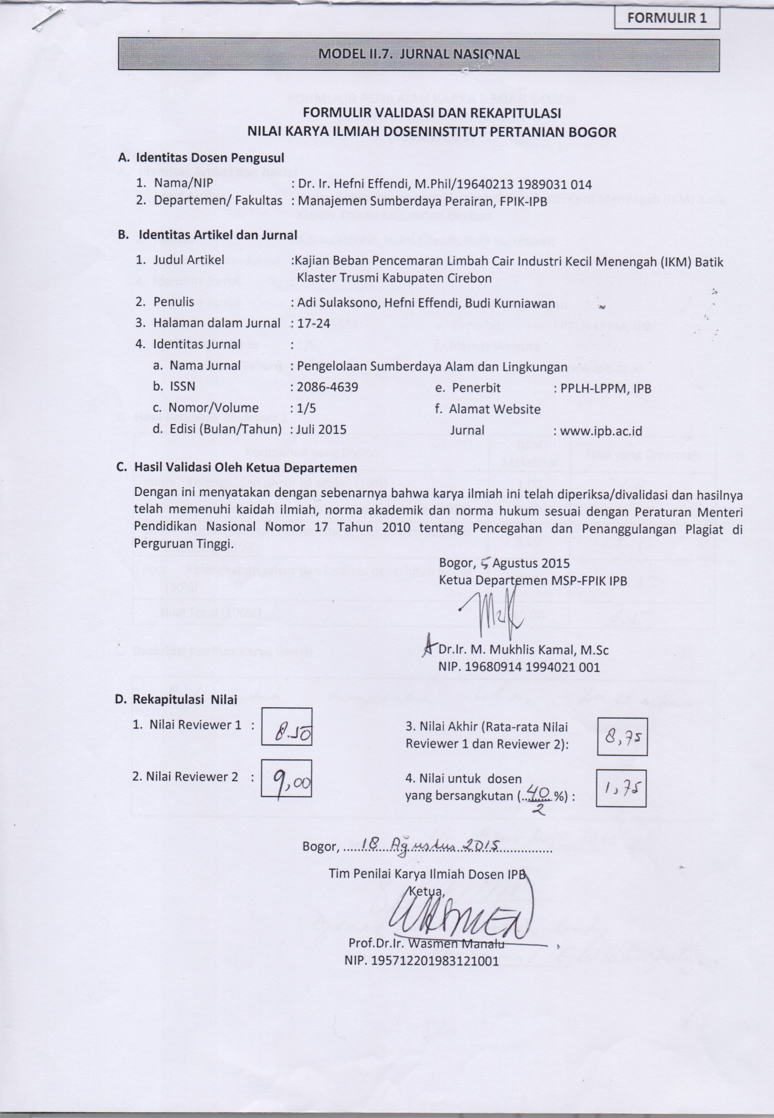 http://repository.ipb.ac.id/handle/123456789/79960| Title: | Kajian Beban Pencemaran Limbah Cair Industri Kecil Menegah (IKM) Batik Klaster Trusmi Kabupaten Cirebon |
