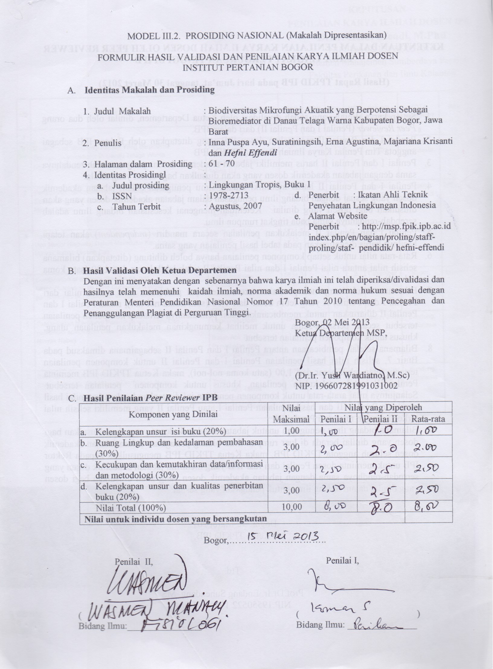 http://repository.ipb.ac.id/handle/123456789/80183| Title: | Formulir Hasil Validasi (Biodiversitas Mikrofungi Akuatik yang Berpotensi sebagai Bioremediator di Danau Telaga Warna Kabupaten Bogor , Jawa Barat) |