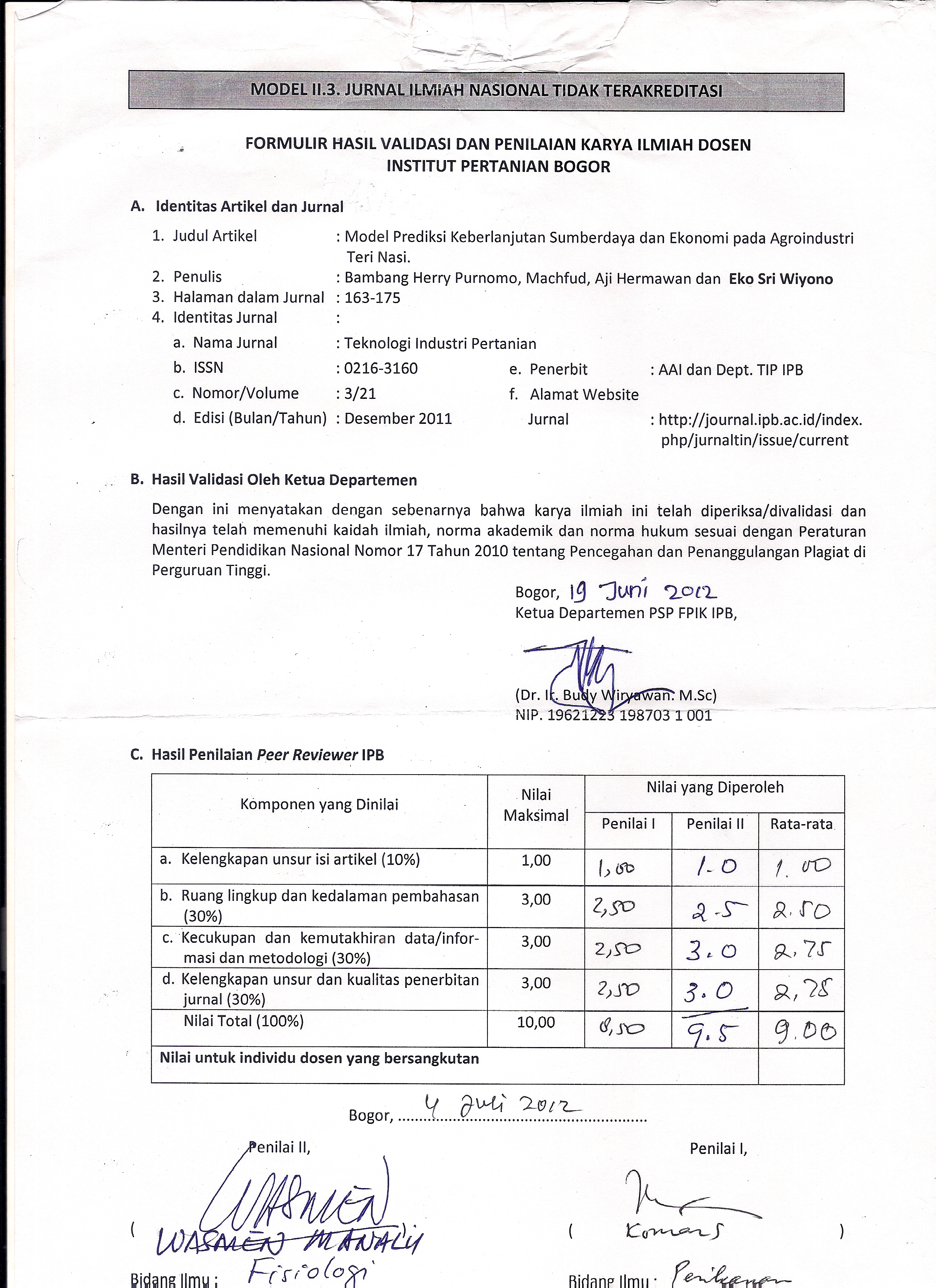Title: Model Prediksi Keberlanjutan Sumberdaya dan Ekonomi pada Agroindustri Teri Nasi